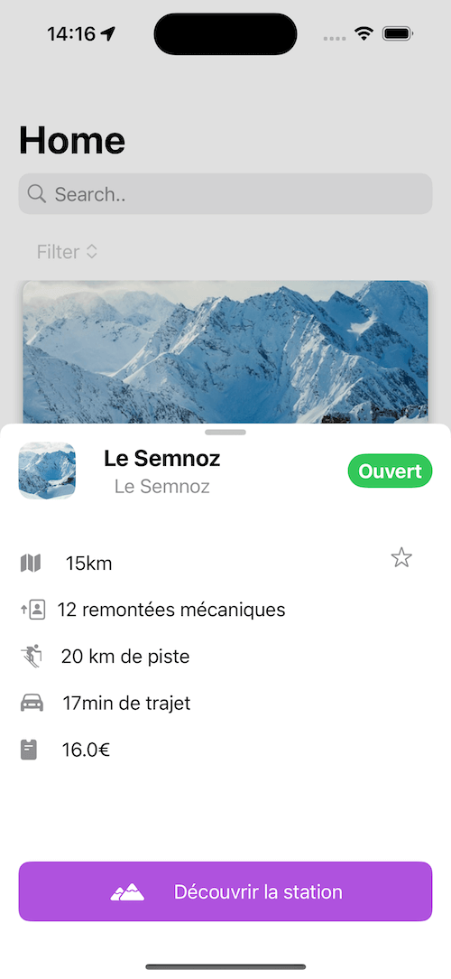 Le listing des stations permet de retrouver les stations de ski les plus proches de chez soi grasse au tri par temps de route estimé par l'API Appel Plan
